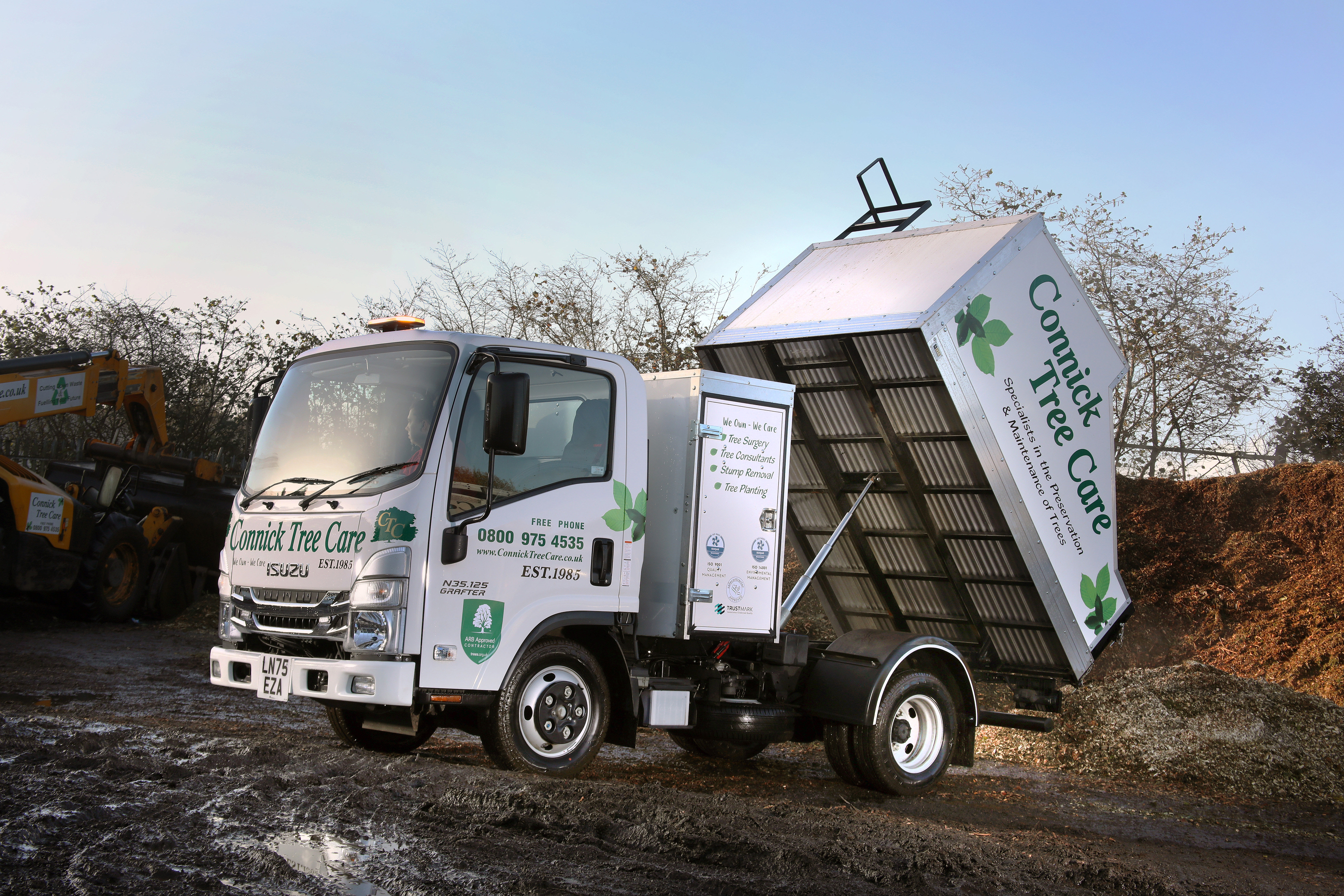 Connick Tree Care’s new Isuzu Grafters are all mounted with custom arboriculture tipper bodywork from Southern Vehicle Bodies.
