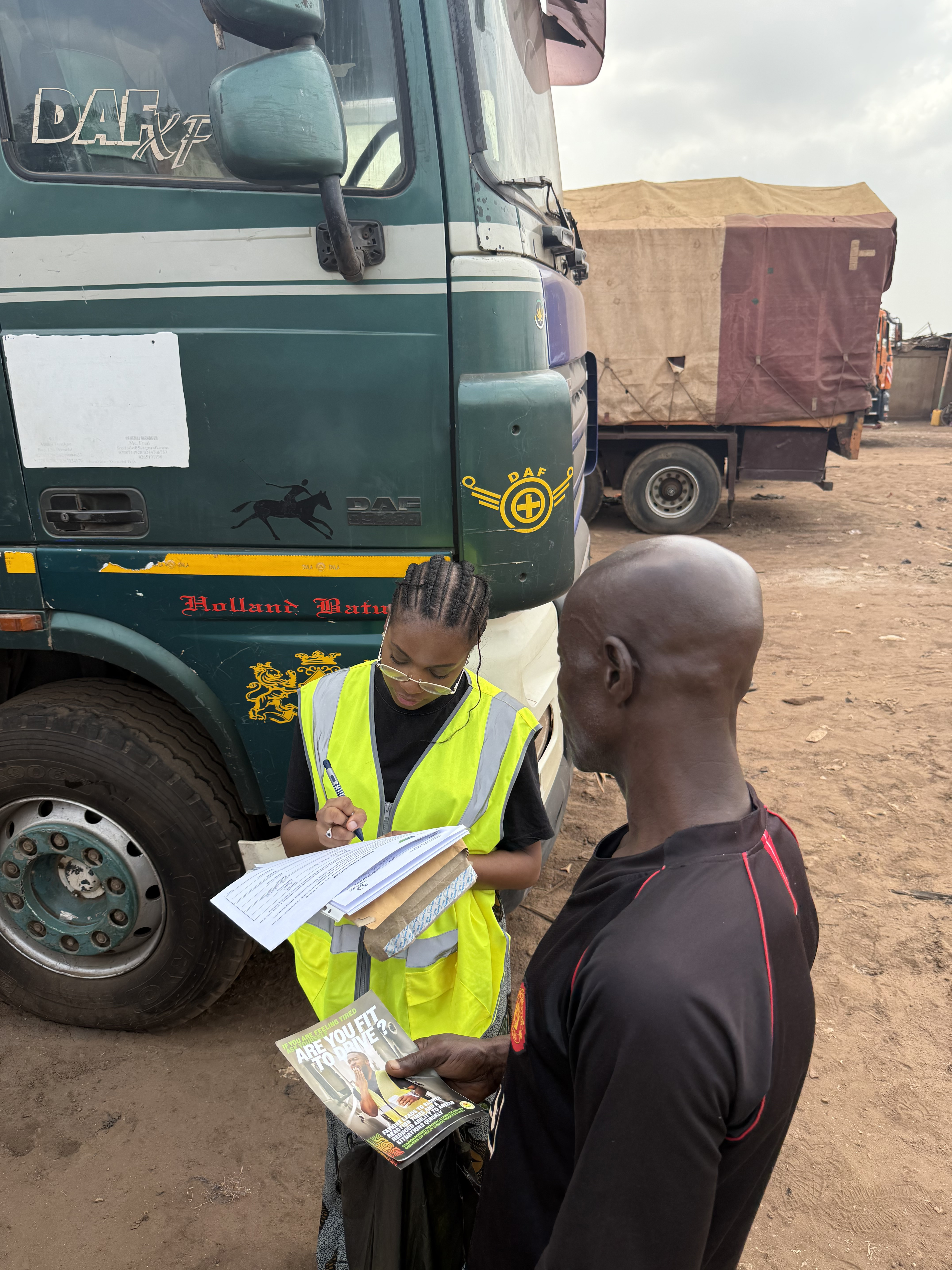 Kemi is focusing on advocacy and outreach work, speaking to commercial vehicle drivers and a variety of stakeholders involved in the Driving Safety Across Ghana project.