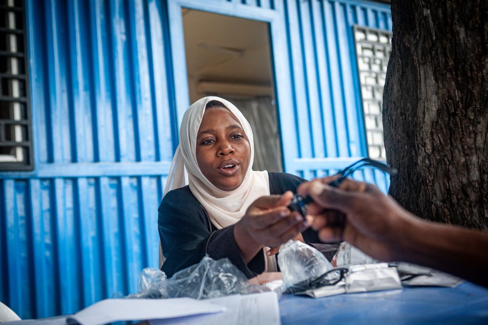 Asha Mongale is a clinician at the North Star Alliance Wellness Centre, fitting glasses for drivers frequenting the Northern Corridor as part of Transaid’s Madereva Salama Zaidi (Safer Roads) Project in Kenya.